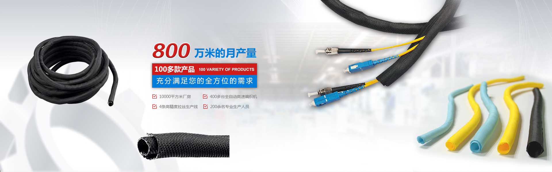 自主設計、研發(fā)、規(guī)模化大型生產(chǎn)企業(yè) 擁有廠房10000平米,400多臺全自動。高速編織機四條高精度紡絲生產(chǎn)線,員工200余人,月產(chǎn)量800萬米,中國最大絕緣保護套管生產(chǎn)企業(yè)之一。